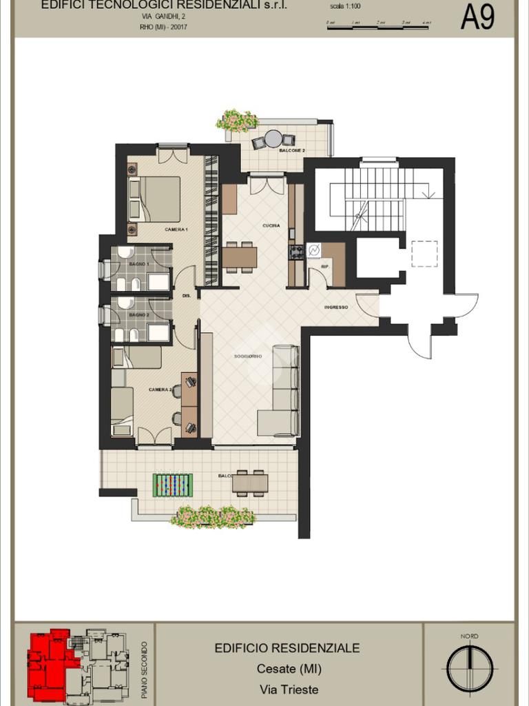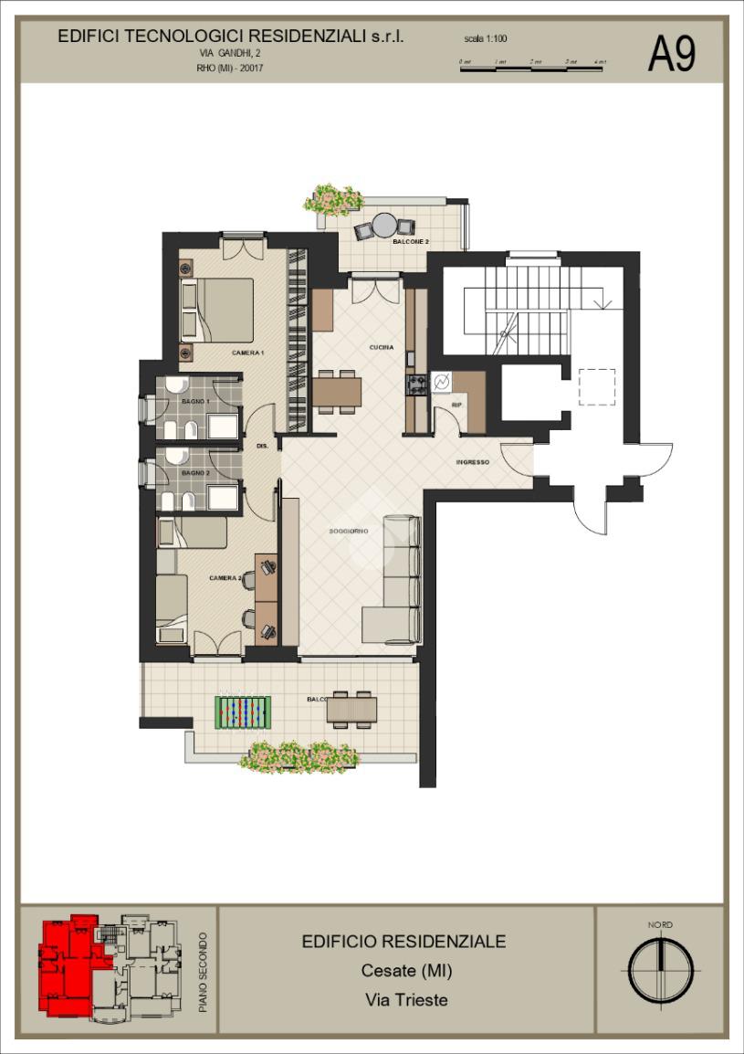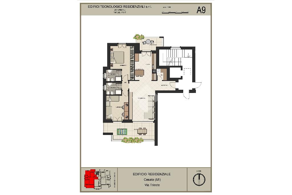 Proponiamo in vendita un elegante appartamento di tre locali, situato all'ultimo piano di un moderno edificio residenziale in costruzione in Via Trieste a Cesate. La palazzina, composta da sole nove unità abitative, sorge in una zona tranquilla e ben servita, a breve distanza dal centro storico e dalla stazione ferroviaria, facilmente raggiungibili a piedi.