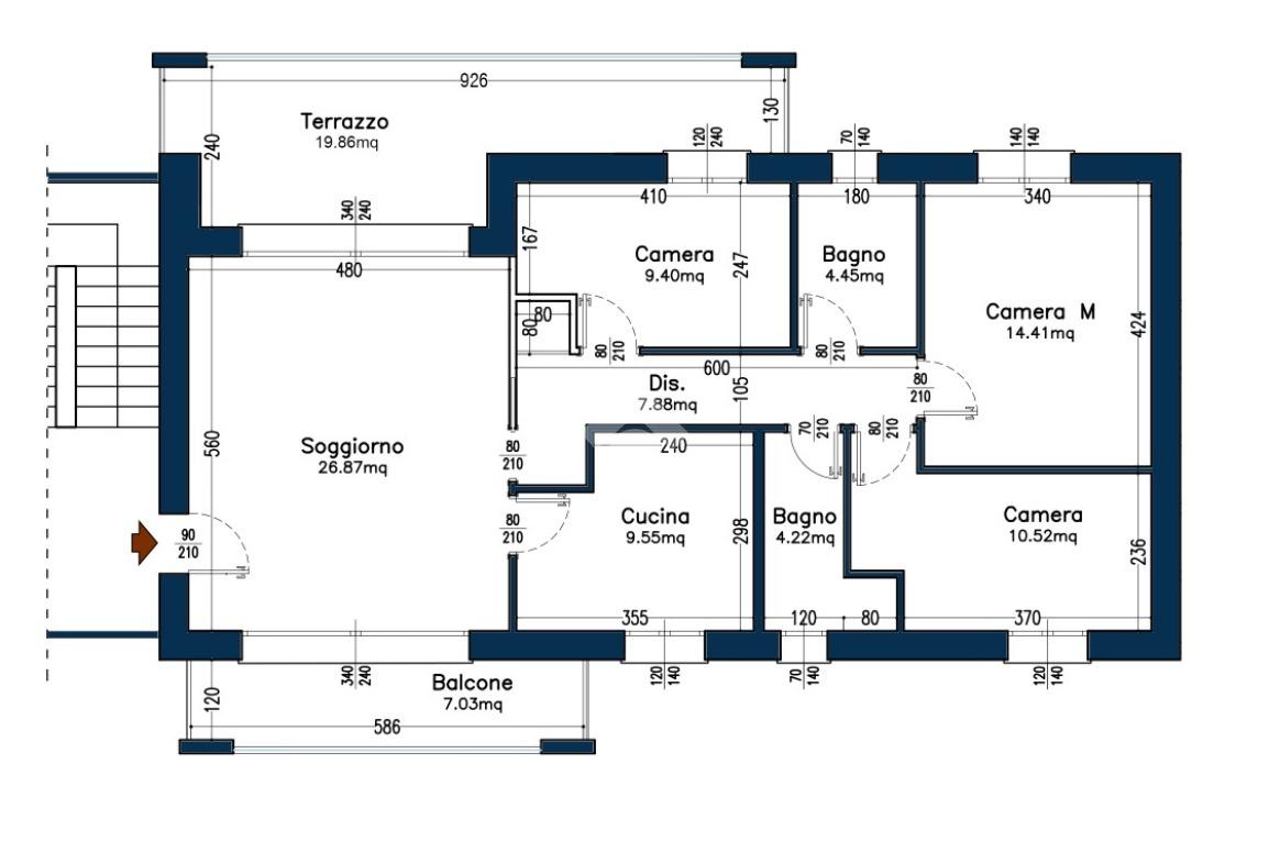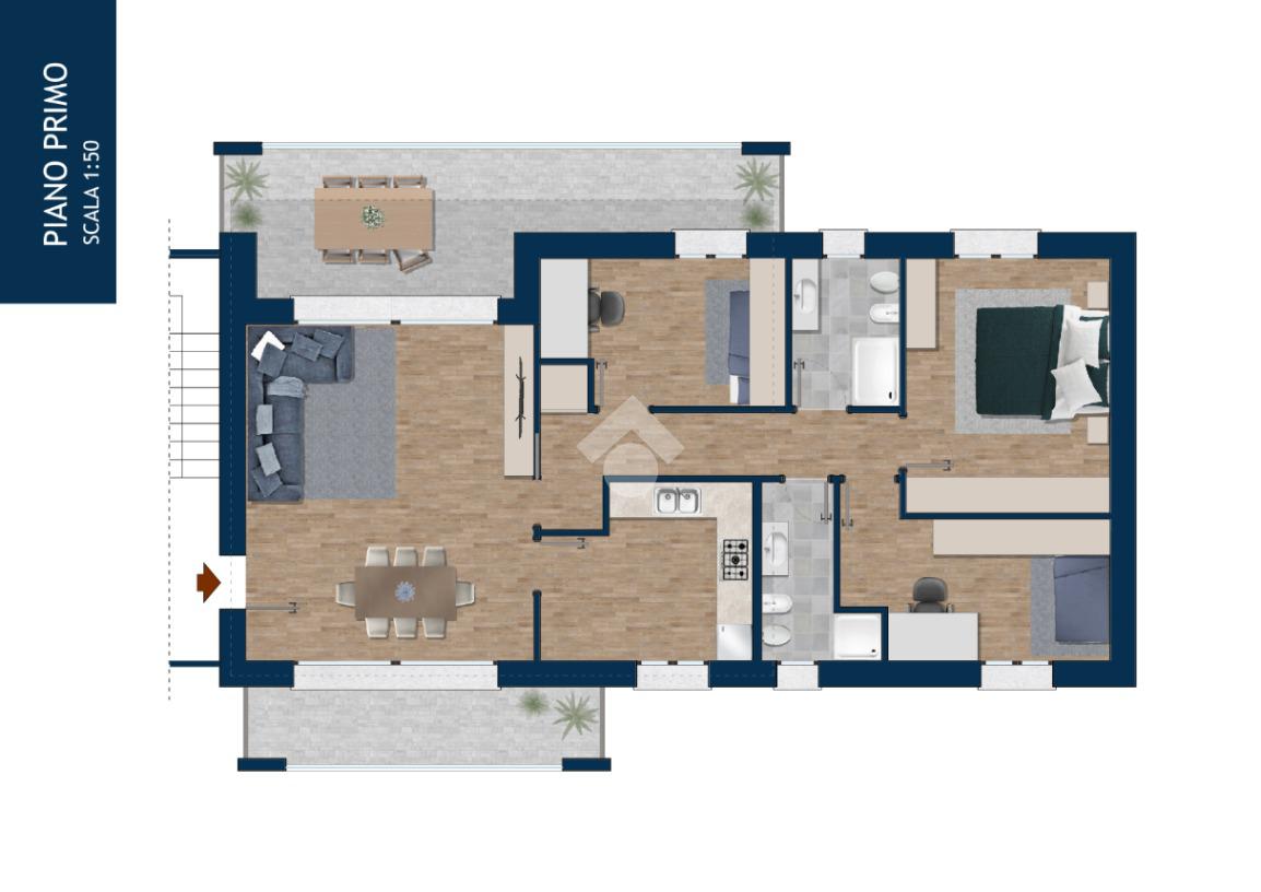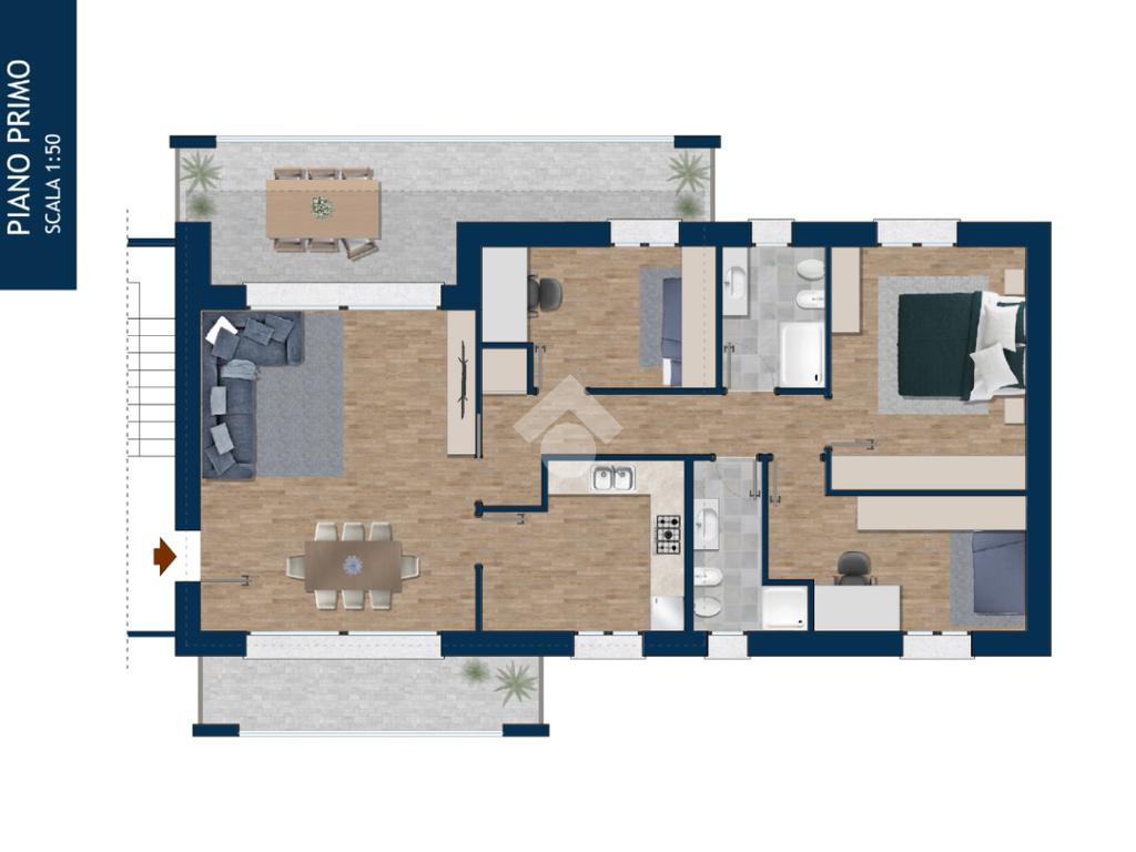 Qui proposto il 4 locali al piano primo composto da soggiorno, cucina abitabile, tre camere, due bagni, terrazzo, balcone, cantina e box doppio compreso.
