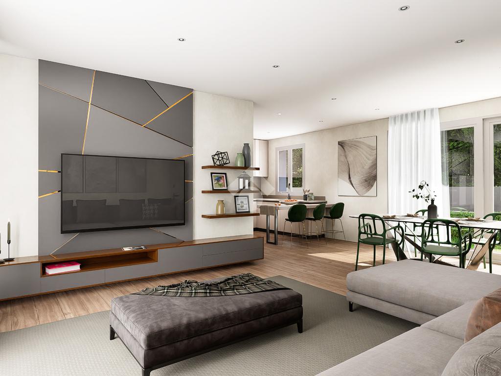 Le unità immobiliari saranno riscaldate con il moderno sistema composto da pannelli radianti a pavimento, che diffondono il calore nell'ambiente prevalentemente per irraggiamento.