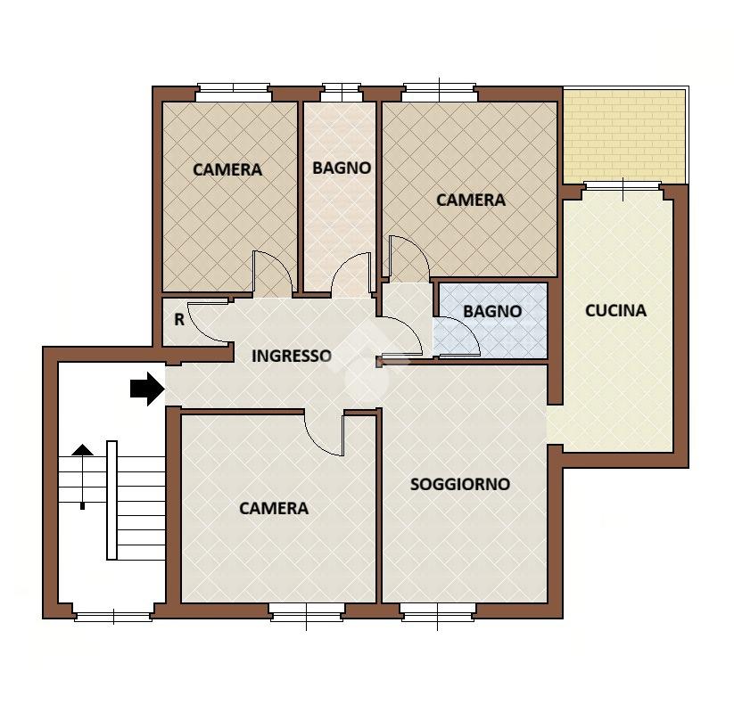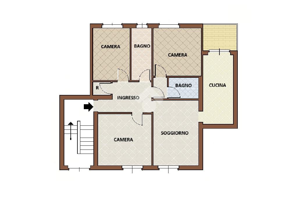L'appartamento comprende un ampio ingresso, soggiorno ed una comoda cucina abitabile collegata ad un terrazzino, tre camere da letto, due bagni e ripostiglio.