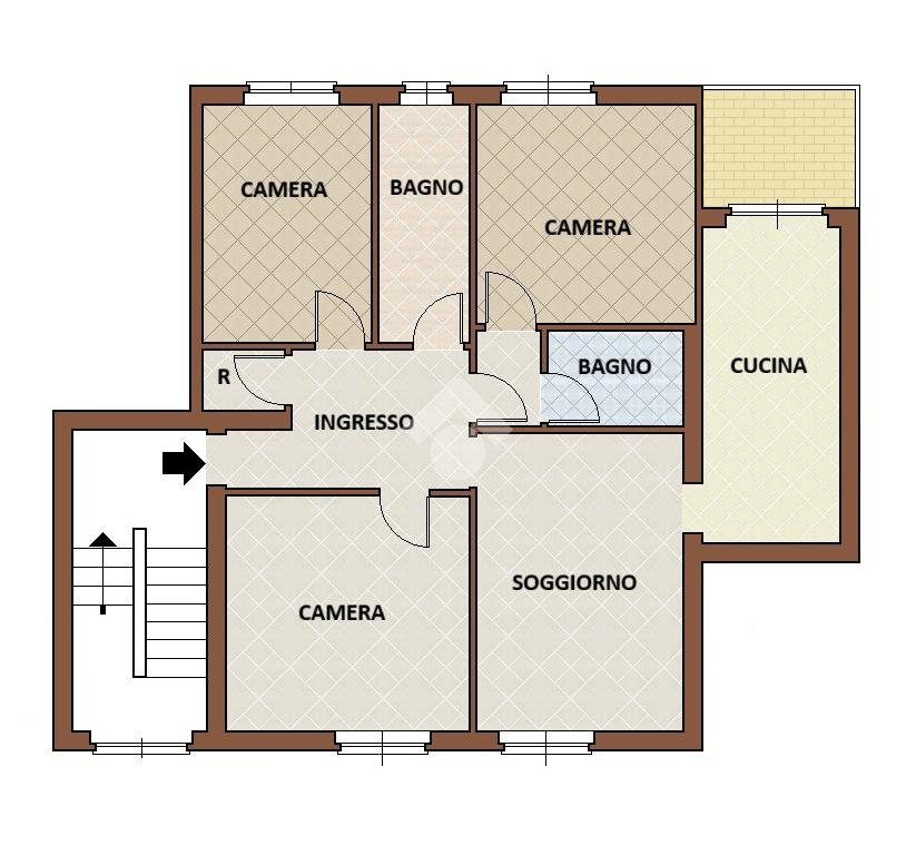 In zona ben servita e vicino alla stazione, proponiamo un ampio appartamento di 120 mq, situato al piano rialzato.