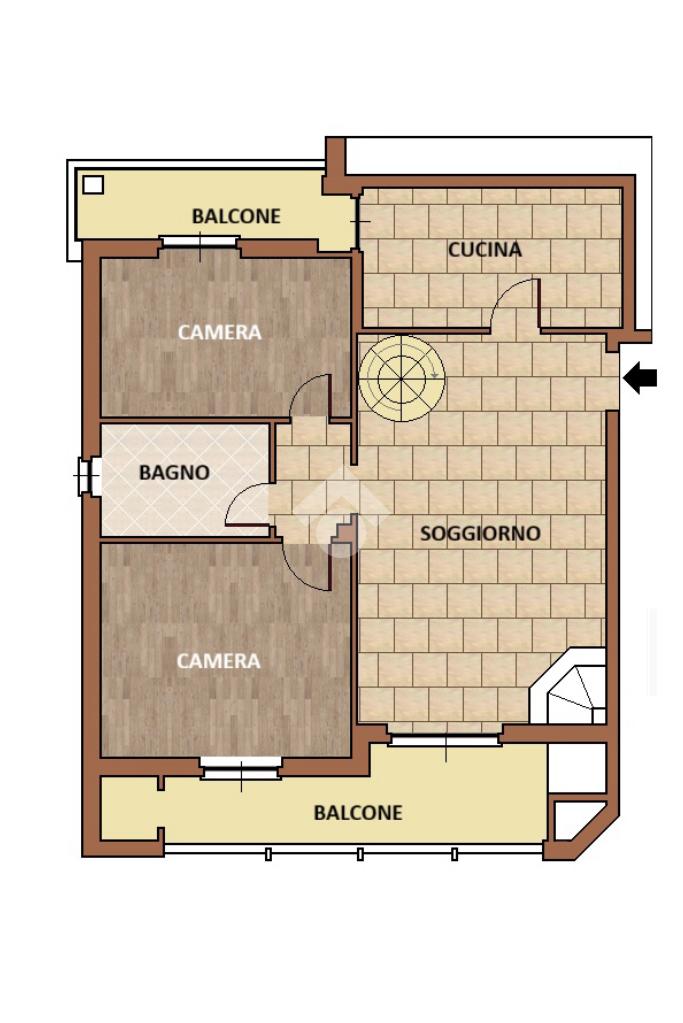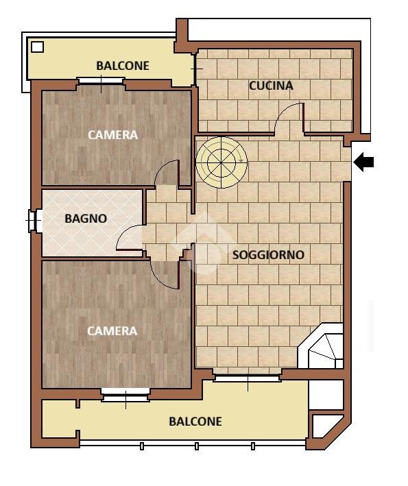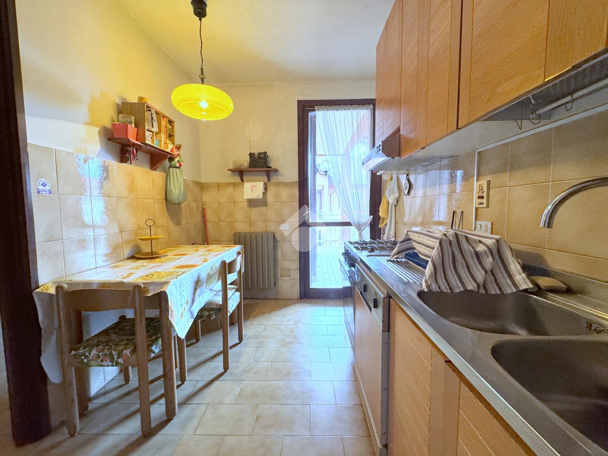 Al suo interno si trovano al piano primo un soggiorno con accesso al balcone, la cucina abitabile anch'essa servita da un secondo balcone, due camere da letto ed un bagno.
