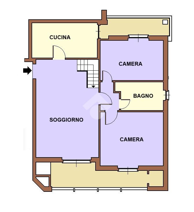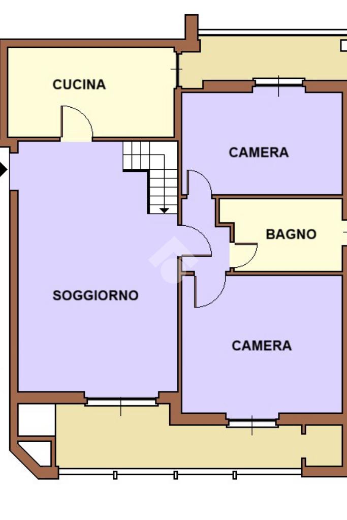 Al suo interno si trovano al piano primo un soggiorno con accesso al balcone, la cucina abitabile anch'essa servita da un secondo balcone, due camere da letto ed un bagno.