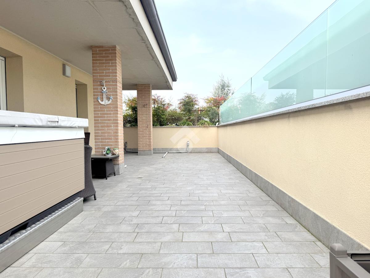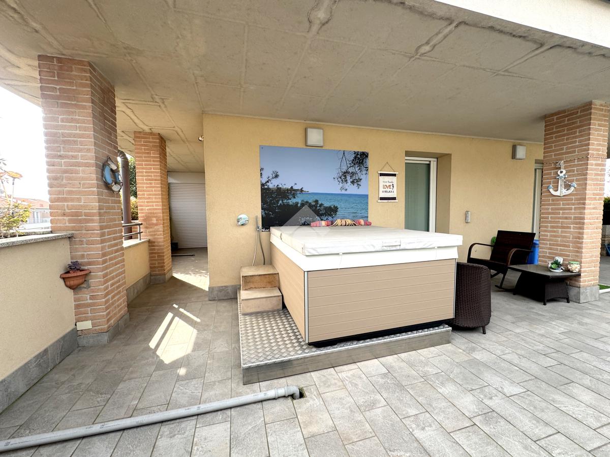 Elemento di assoluto prestigio è lo splendido TERRAZZO panoramico che circonda completamente l’abitazione su quattro lati, un ambiente da vivere in ogni stagione, ideale per momenti di relax, cene all’aperto e piacevoli momenti conviviali. Il tutto è arricchito dalla presenza di una vasca Jacuzzi, che trasforma il terrazzo in un’area wellness privata, perfetta per godersi il massimo comfort in totale privacy.
