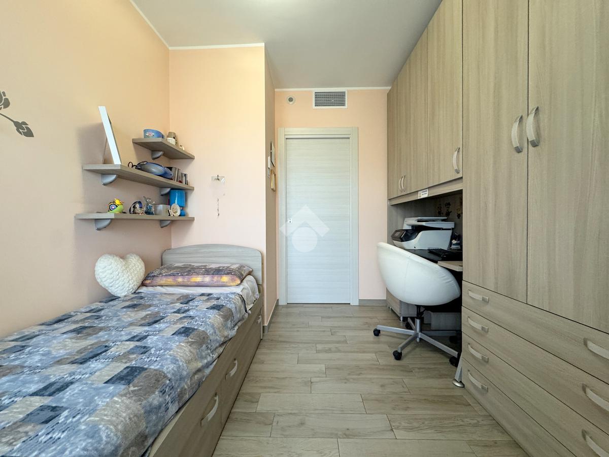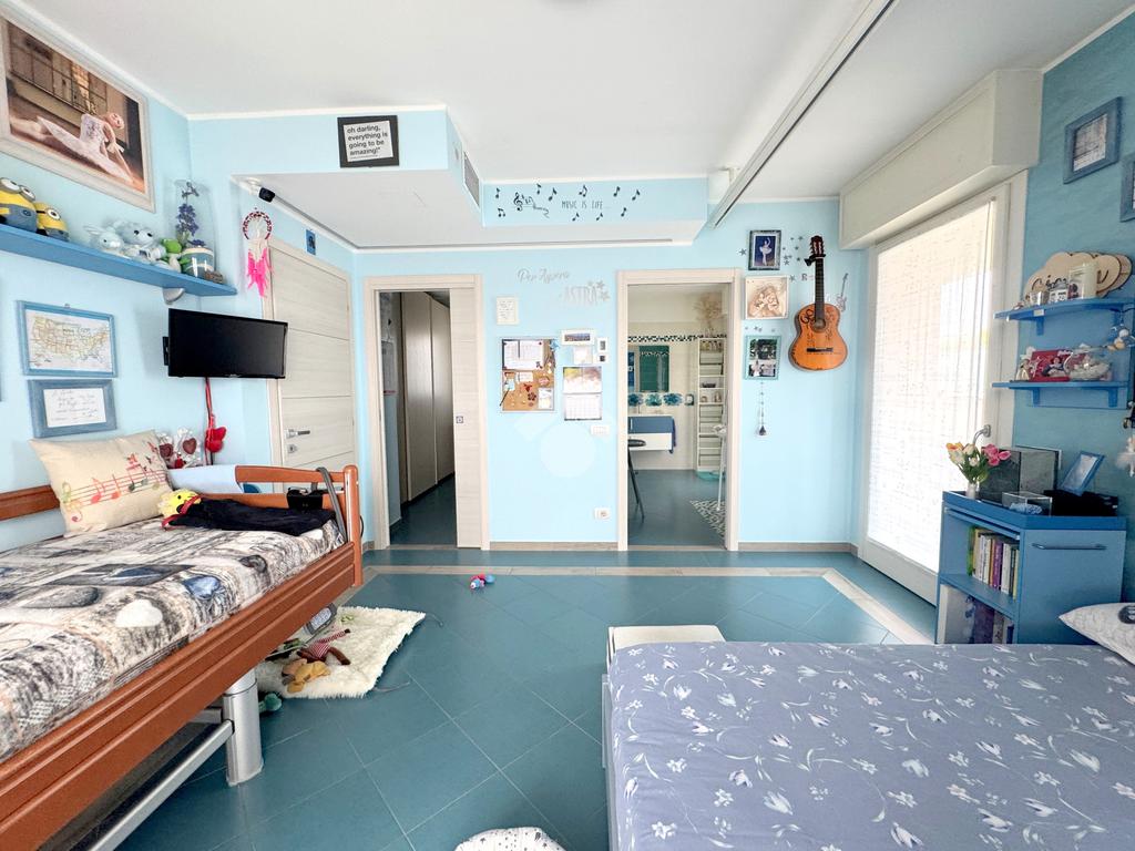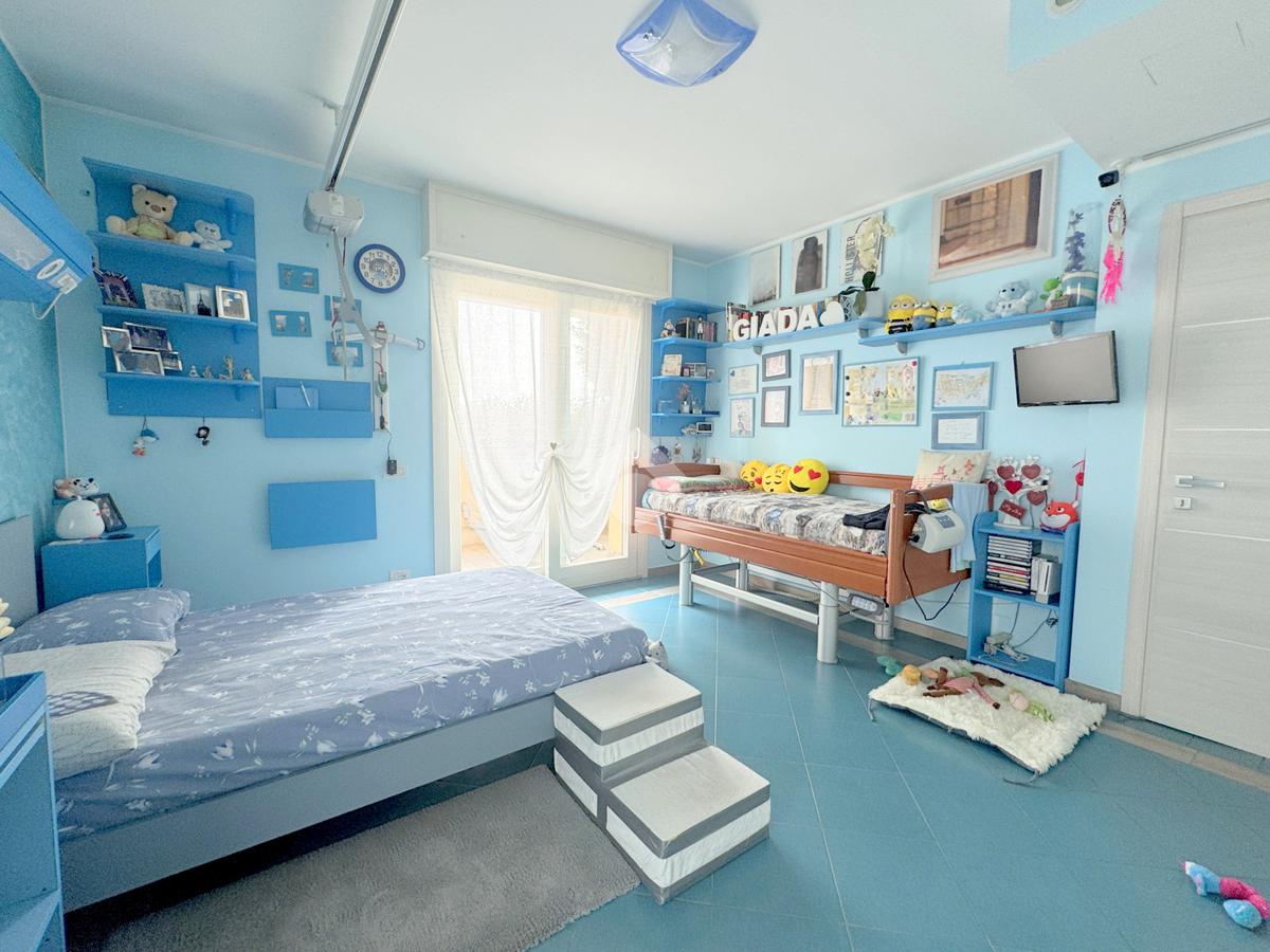 Un disimpegno conduce alla zona notte, ben separata dalla zona giorno per garantire maggiore tranquillità. Qui troviamo due camerette, un secondo bagno di servizio e una camera matrimoniale impreziosita da cabina armadio e bagno privato.