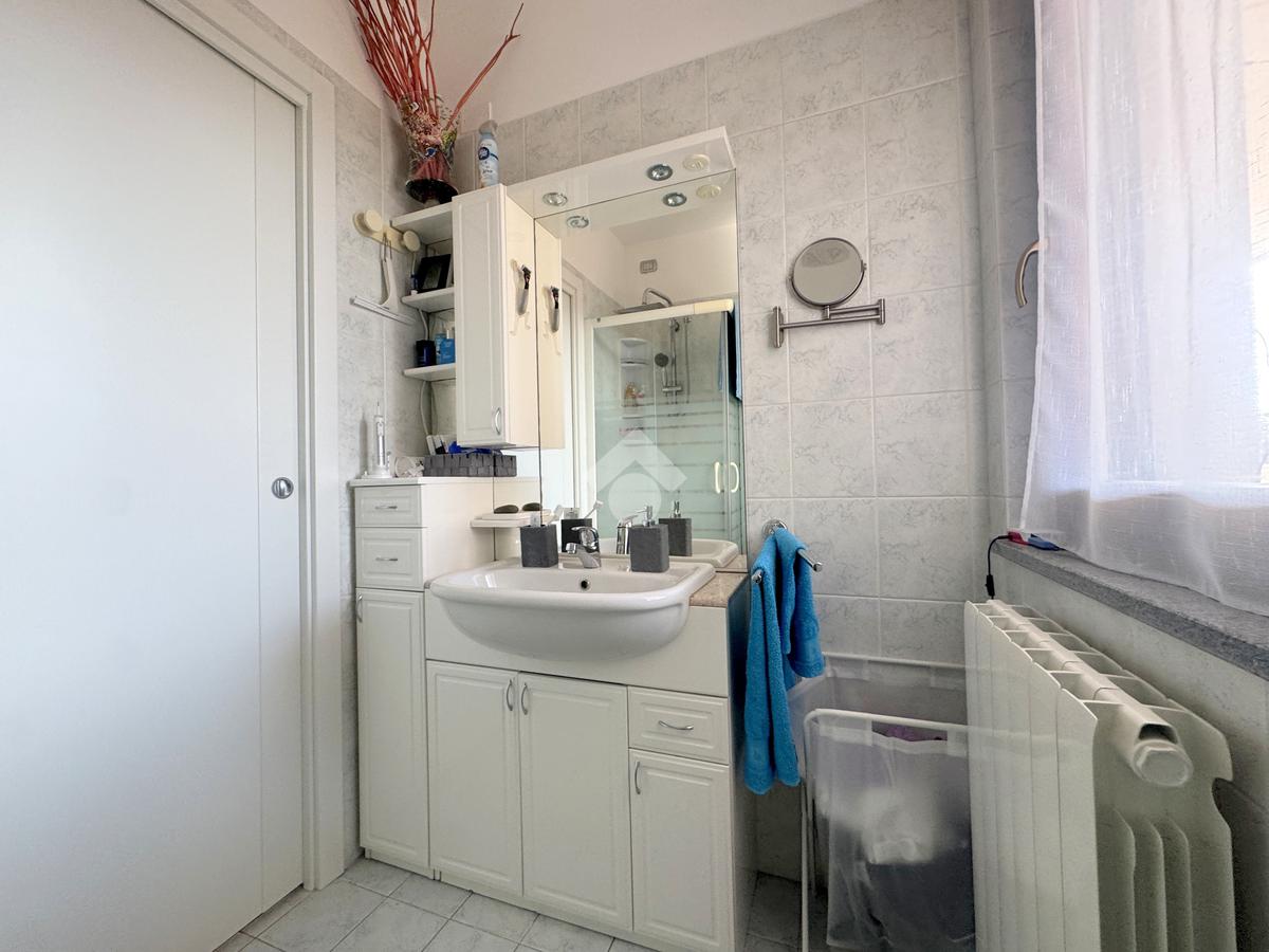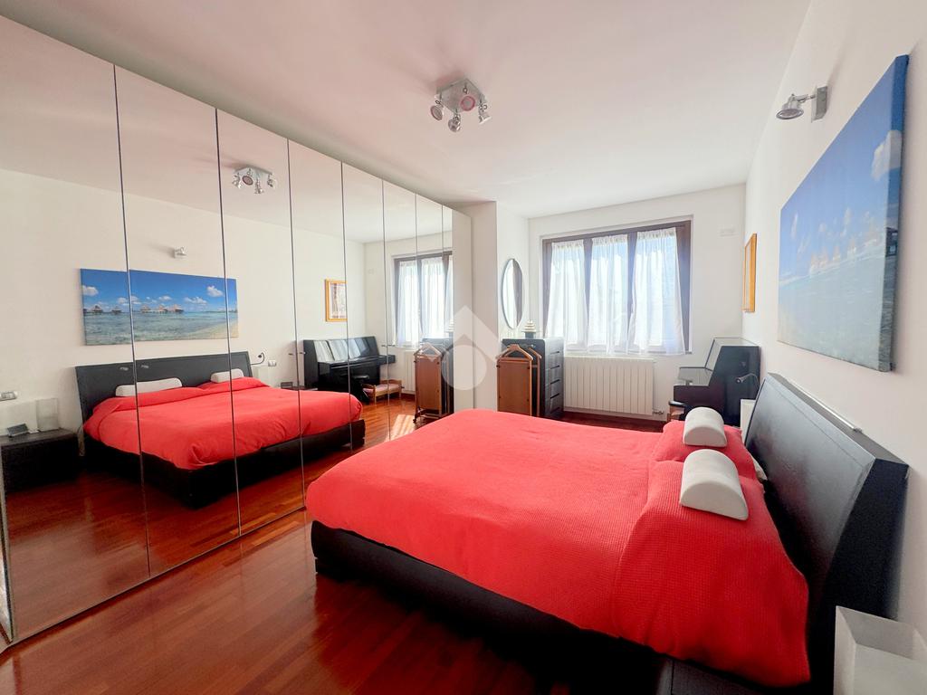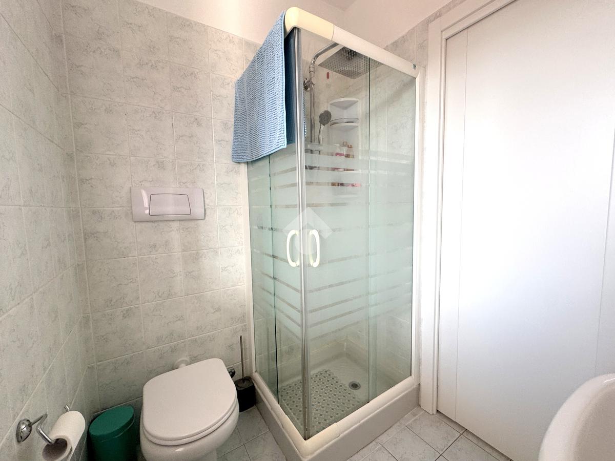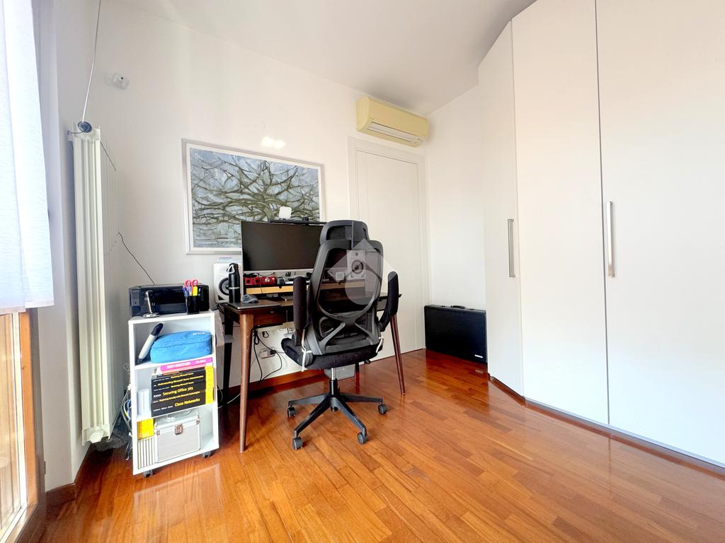 La zona notte, ben separata e studiata per garantire privacy e tranquillità, si compone di una camera matrimoniale e di una cameretta, quest’ultima collegata al secondo terrazzo attrezzato con attacco per lavatrice e lavello, ideale anche come pratico spazio di servizio, il tutto si completa con due bagni, entrambi finestrati.